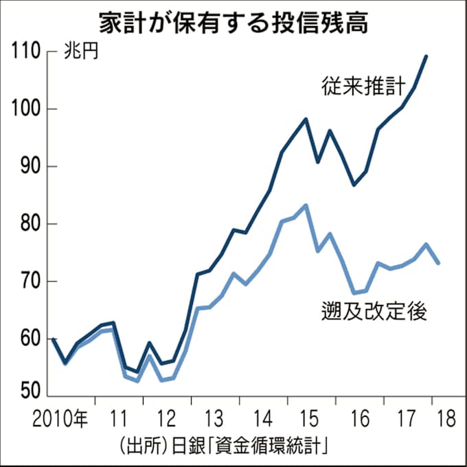 家計が保有する投資信託残高、資金循環統計が改訂された